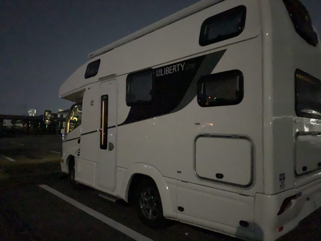久しぶりに1週間ほどワーケーションに出ようと思い家族に相談したらOKが出たので、新潟周辺、佐渡島、北海道のいずれかにするつもりで、とりあえず新潟に向かうことだけを決めて、自宅を出発しました。まずはキャンピングカーの駐車場まで、自宅から千葉まで走り、荷物の積み込みと給水を。前回の旅で不具合が出ていた清水タンクの水漏れと、床への浸水を修理してもらっていたので、給水がてら水が床に漏れていないかチェックしました。すでに17時ぐらいでしたが、新潟港フェリーターミナルへ出発、300km以上あるので23時ぐらいになるだろう。サービスエリアで小休止しながら5時間ぐらい運転し、23時ごろに港から10kmぐらいの道の駅「新潟ふるさと村」に到着しました。