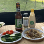 16:00ぐらいには仕事を終えて、車で5分ぐらいにある近くの温泉に行きました。このキャンプ場はシャワーも使えるのですが、仕事が早く終わる日はなるべく温泉に行こうと思います。夕飯はスクリーンシェードの中で、ジンギスカンを調理して食べました。19:00ぐらいにちょうど夕日になるので、時間を見計らってドローンで夕日の撮影をしました。素晴らしい眺望と夕日を撮影できました。夜はお酒を飲みながら、夜景を長め、まったりと過ごします。