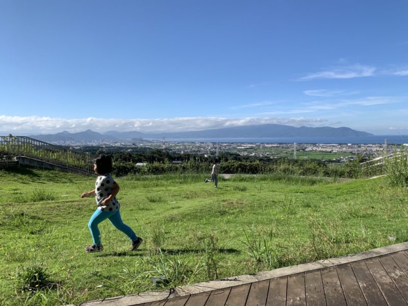 金曜日のワクチン接種後、仕事を終えて千葉のモータープールに向かい、準備を整えて横浜の家族をピックアップし、いつも車中泊する東名高速のサービスエリアに向かいました。22時くらいに到着し、副反応の様子をうかがいましたが、しっかりとモデルナアームになっていました。注射したあたりがかなり痛くなってきて、筋肉が炎症を起こしている感じです。さすがにアルコール摂取はやめておこうと思い、少しマッタリして就寝しました。家族はバンクベット、私はダイネットをベットにして、ゆったりと寝かしてもらいました。サービスエリアからふもとっぱらまでは1時間ぐらいの距離なので、7時くらいに起きて、駿河湾を一望できるいつもの場所で朝食を頂き、8時には出発しました。
