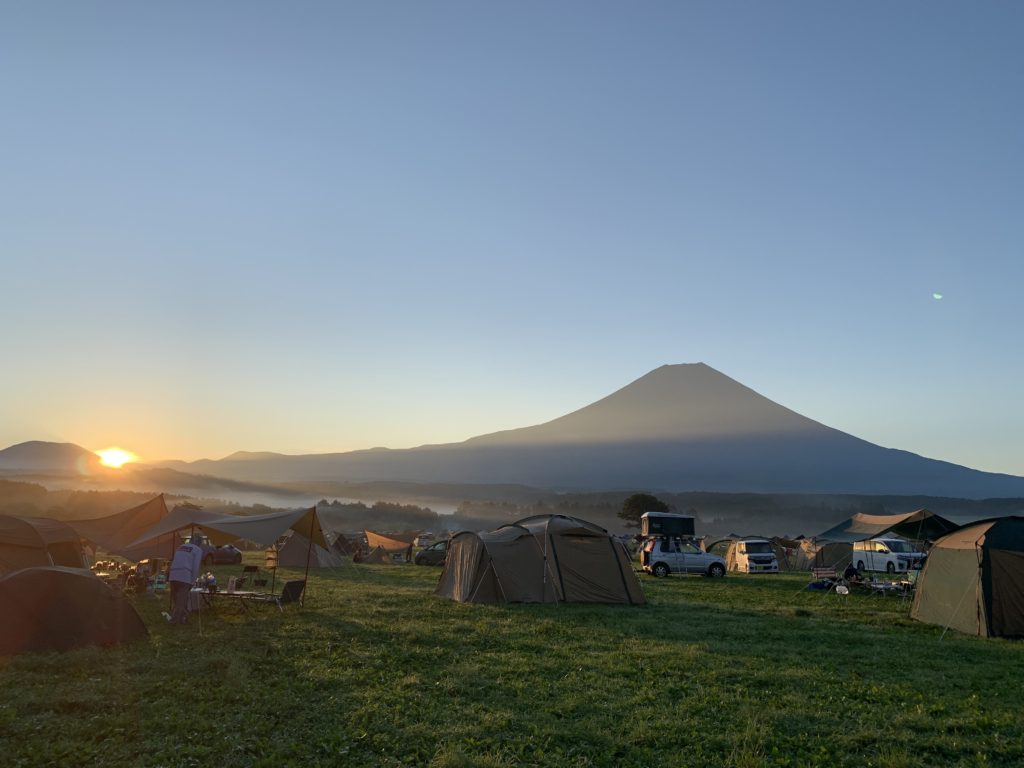 土日は快晴で、昼間に時折、富士山に雲がかかりましたが、夜と早朝は綺麗な富士山を拝めました。夏のふもとっぱらは、ブヨとカナブンとの闘いですが、今回は虫よけスプレーでしっかり防虫したので、ブヨに刺されることもなく、夜のカナブンの襲撃も数匹見かける程度で、全く苦にならずでした。夜の気温は15度前後だったので、あまりカナブンが活発化していなかったのかもしれません。日中はキャンピングカーの中は30度を超えるぐらいの日差しで、窓を遮光しないとかなりの暑さになりました。運転席とすべての窓を遮光して全開、マックスファンをフル回転して、扇風機をつけると27度くらいにまで下がり、なんとか昼寝できるレベルになりました。外はそよ風が吹き、日差しは強いですが、タープの下にいれば暑くなく快適に過ごせました。ふもとっぱらは冬のほうが好きですが、夏もそよ風があれば過ごしやすく、虫対策さえすれば最高なキャンプ場ですね。