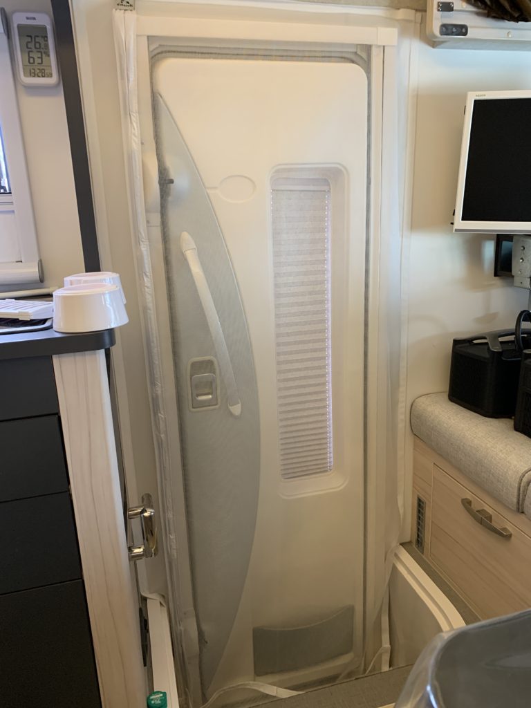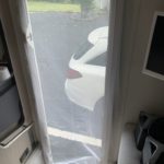 キャンピングカーのドアにカーテン網戸をつけてみました