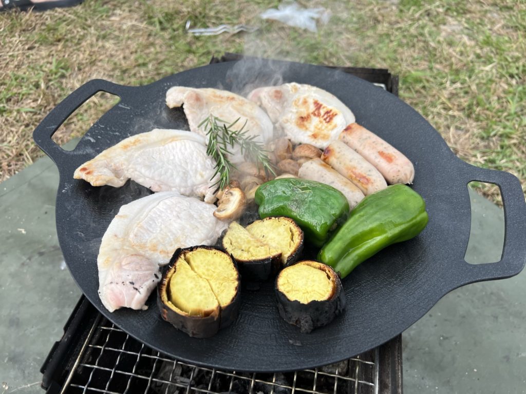 33cmのマルチグリドルを使いましたが、ファミリーキャンプならもうちょっと大きい方が良いかも。