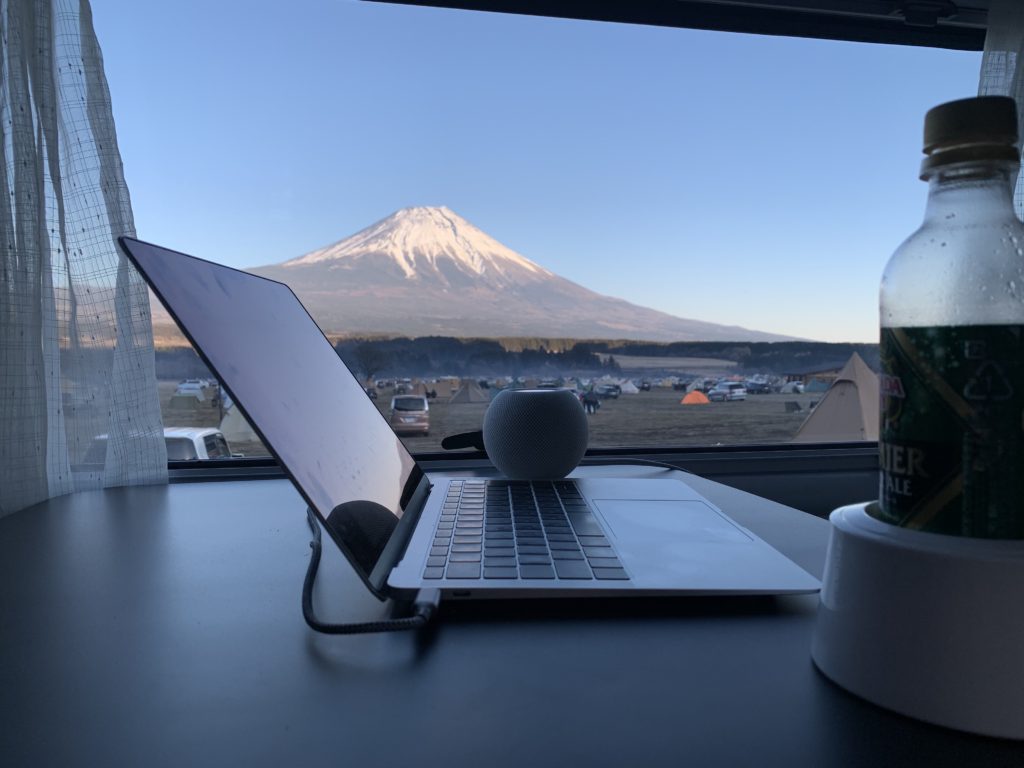 待ちに待ったキャンピングカーがついに納品されました。午前中にデルタリンクさんにお邪魔して諸々の説明を受け、家から持ってきた荷物を積み込んで、午後からキャンプ場に出発、ふもとっぱらでキャンプをしています。初日は夕方に着いたため、ほぼ荷物の整理で終わり、翌日は日の出を見ながら珈琲を淹れ朝日を堪能しました。今は富士山を見ながらのんびりとブログを書いています。